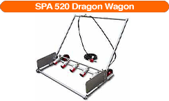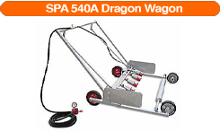 All adjustable Dragon Wagon. Equipped with five adjustable burner heads and a fully adjustable manifold. Unique onehand design makes this unit easy to maneuver. Roll mount system eliminates spooling. Just lift the trailing wheels over the modified bitumen and begin rolling. Manifold moves to and from the roll as desired. Side shields concentrate heat on the material, not on the operator.