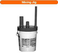 Enjoy hands free mixing with our new mixing jig. Its basic design is that of a steel pail lid measuring 12” in diameter and fits securely on to a 5 gallon pail of material. Equipped with a welded on pouring spout for adding an activator. Use with electric or air-driven power tool with a 1/4” to 3/4” drill.